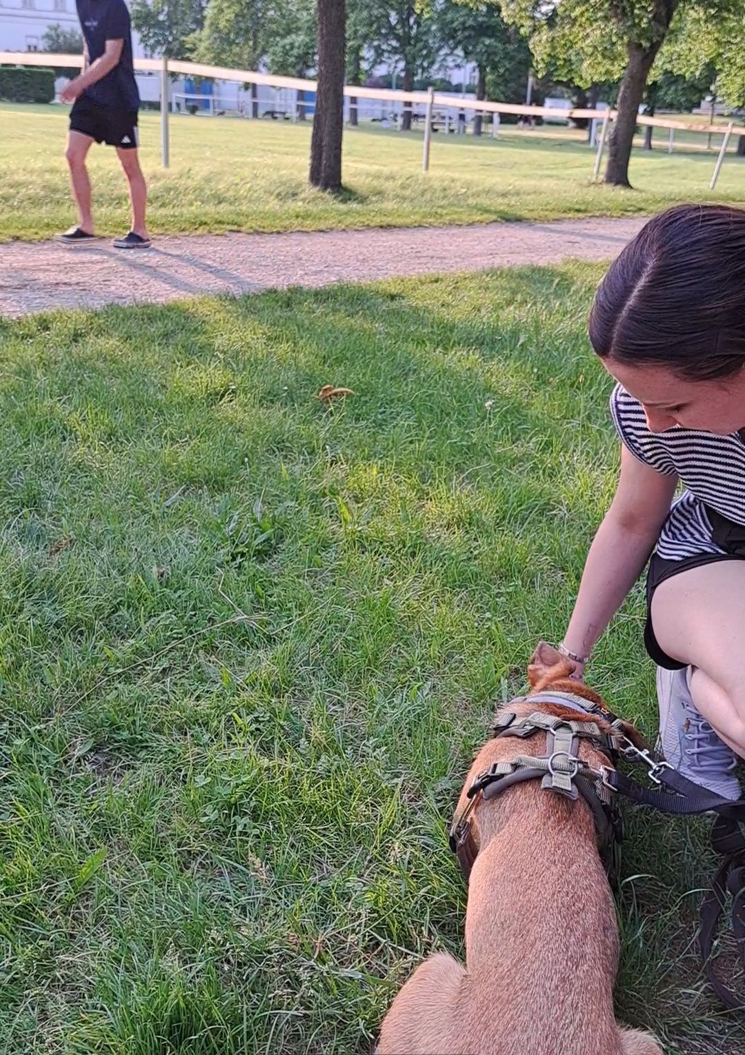 Wir knüpfen an das Gelernte aus dem Grundkurs an und fördern Alltagskompetenzen wie Leinenführigkeit, Orientierung am Halter, Abrufbarkeit, Impulskontrolle und Frustrationstoleranz unter erschwerten Umweltbedingungen.